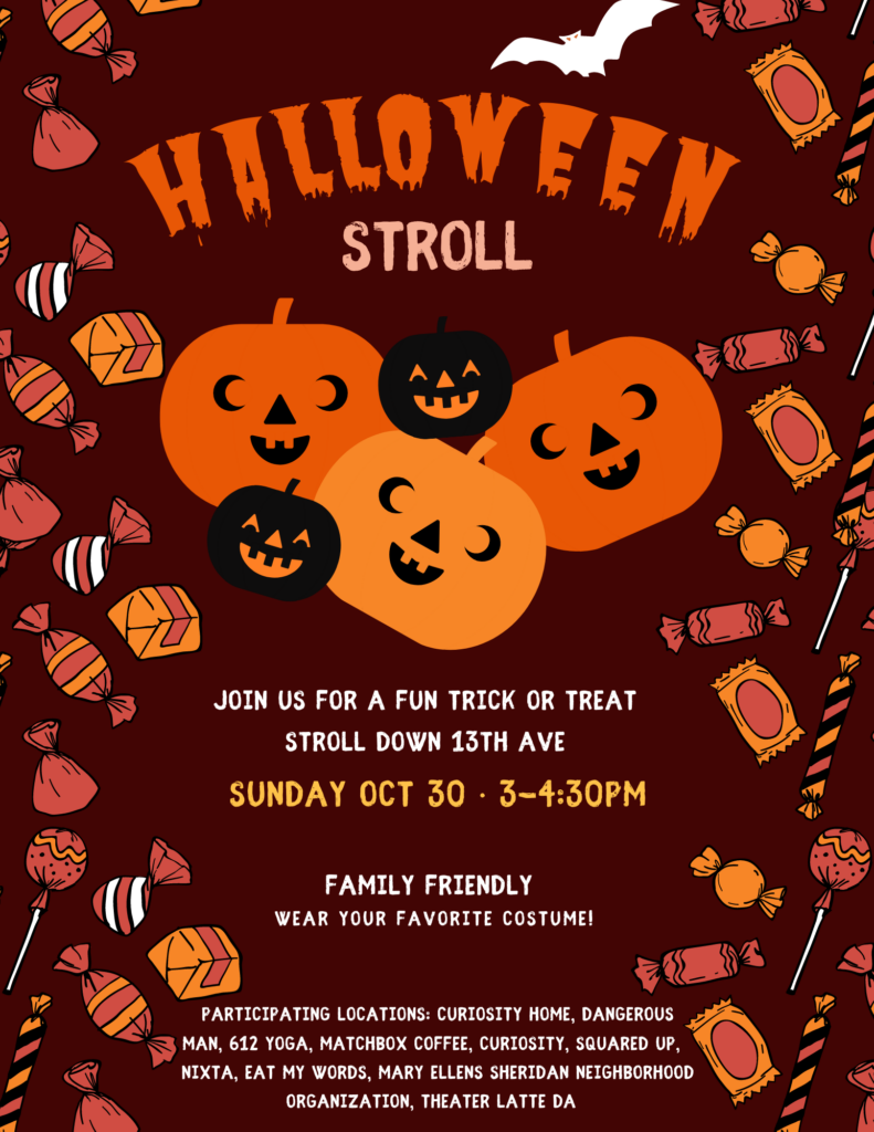 13th Avenue Halloween Stroll Family friendly trick-or-treating down 13th Ave on Sunday October 30th! Dangerous Man will have free candy for families to come into the Taproom or Growler Shop and grab! Wear your favorite costume!