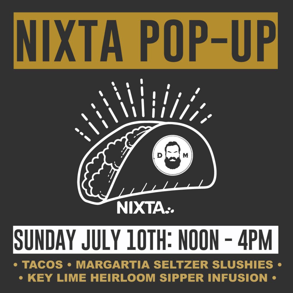 Join us on Sunday, July 10th, from Noon to 4pm for a Nixta Tortilleria & Mexican Takeout Pop-up! We will be pouring our collaboration beer, Heirloom Sipper Mexican Corn Lager, a Key Lime Heirloom Sipper Infusion, Margarita Seltzer Slushies, and Nixta will be serving up chips & dips, tacos and more!